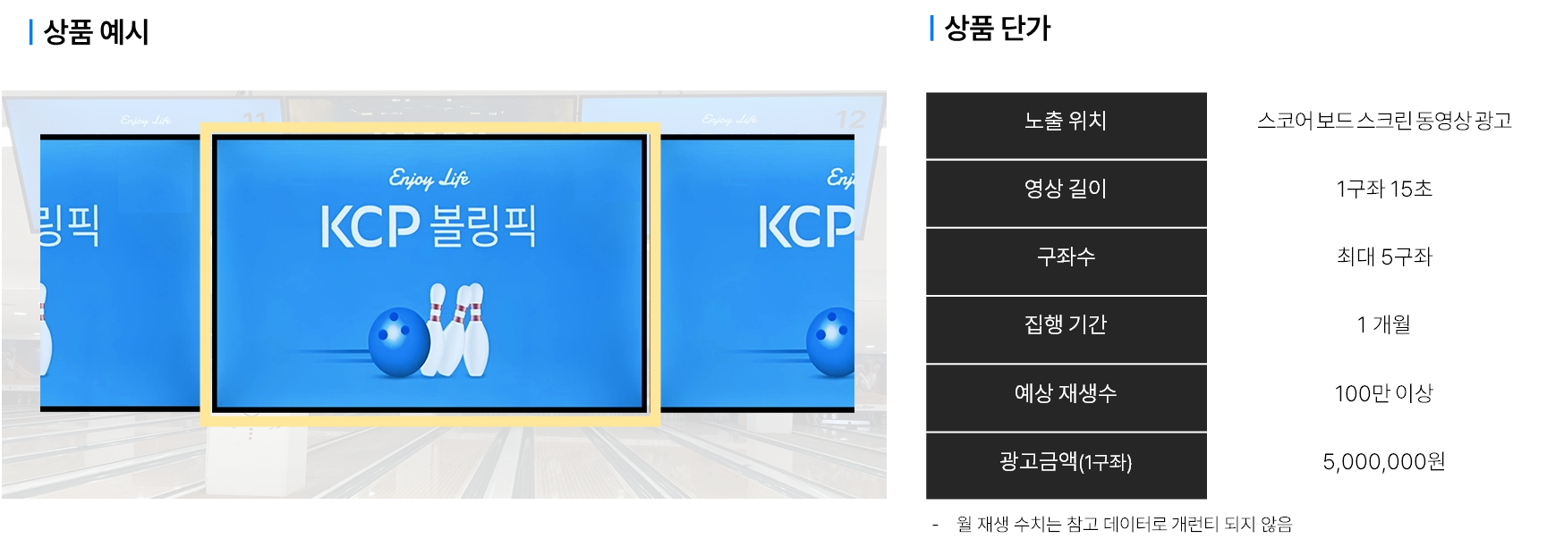 한 눈에 보는 KCP 볼링픽 볼링장 스크린 광고