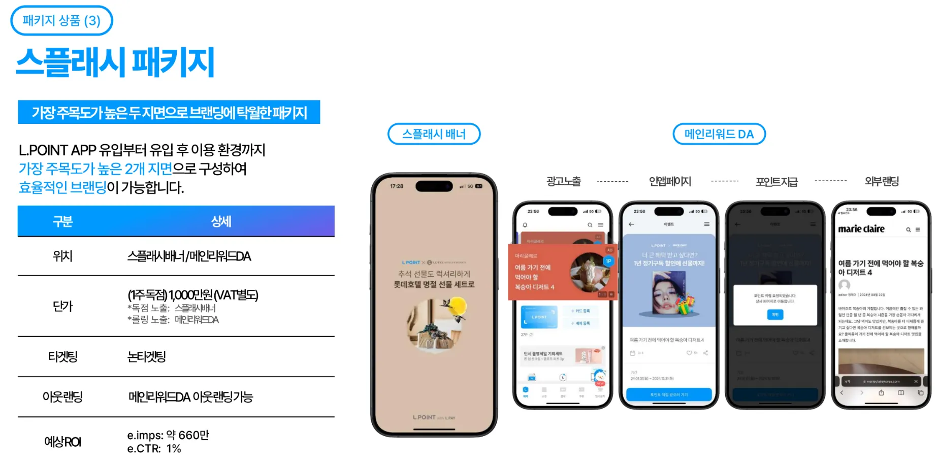 가장 주목도 높은 2개 지면으로 구성하여 효율적 브랜딩 가능