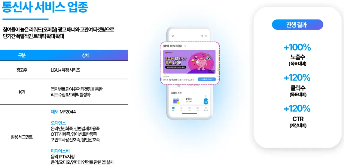 차량, 분양/부동산, 금융 등 다양한 업종에서 집행 사례를 보유 중입니다.