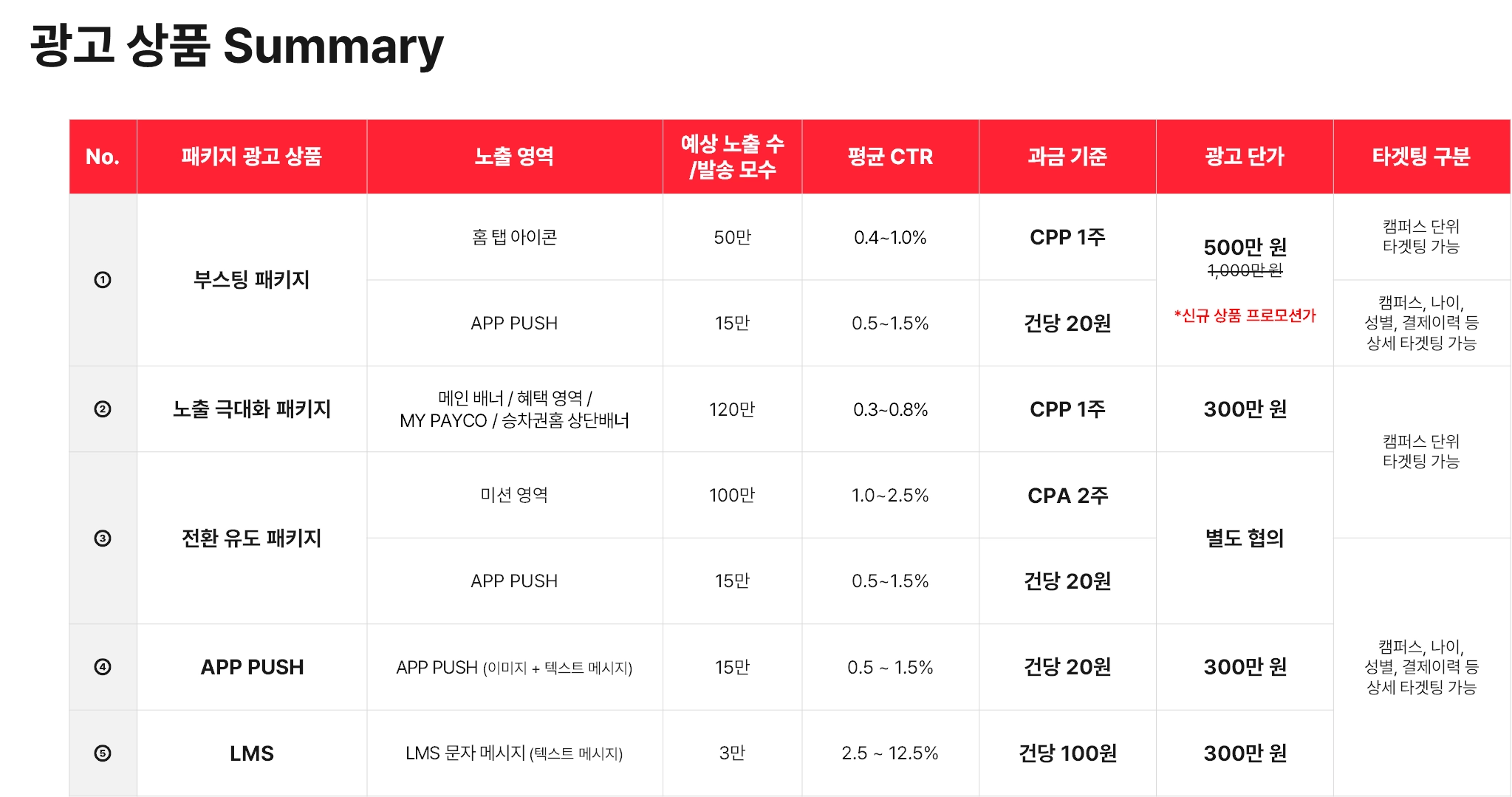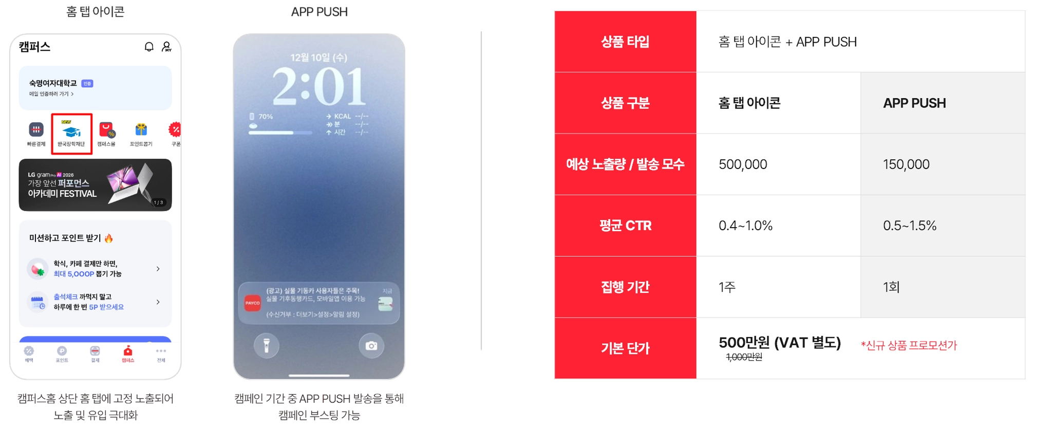 페이코 캠퍼스 이용 전체 유저 대상 캠페인 홍보가 가능한 상품