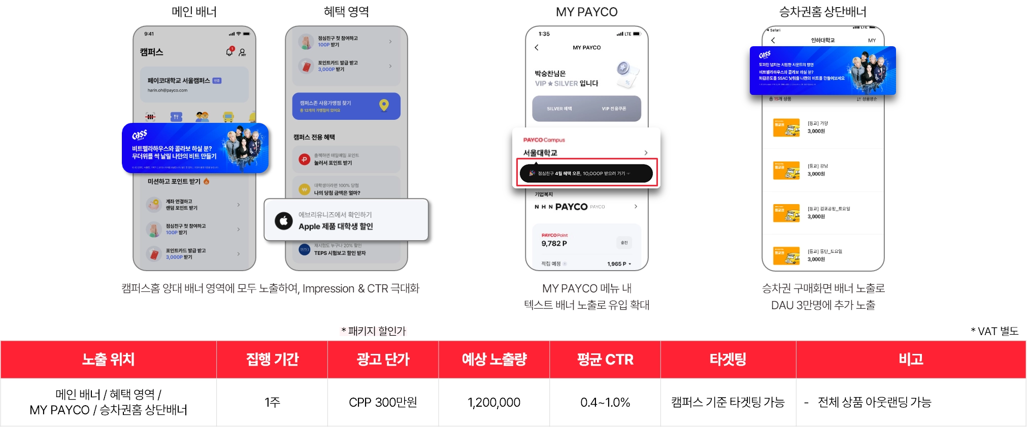 페이코 캠퍼스 홈 유저가 이용하는 모든 지면에 광고 노출하는 패키지 상품