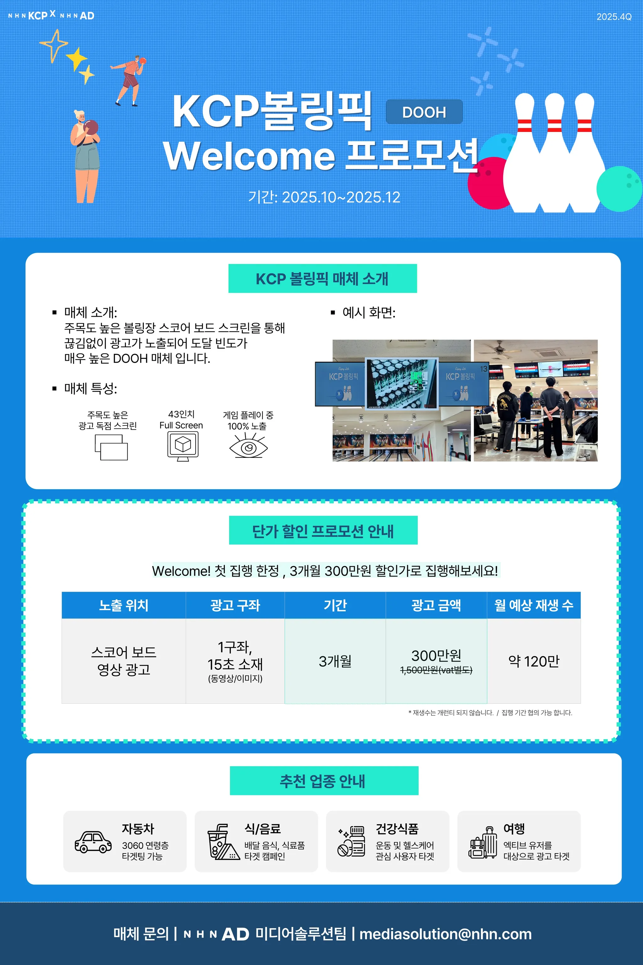 25년 10~12월 KCP 볼링픽을 첫 집행하는 신규 광고주 대상 3개월 300만원 집행 프로모션을 진행합니다.