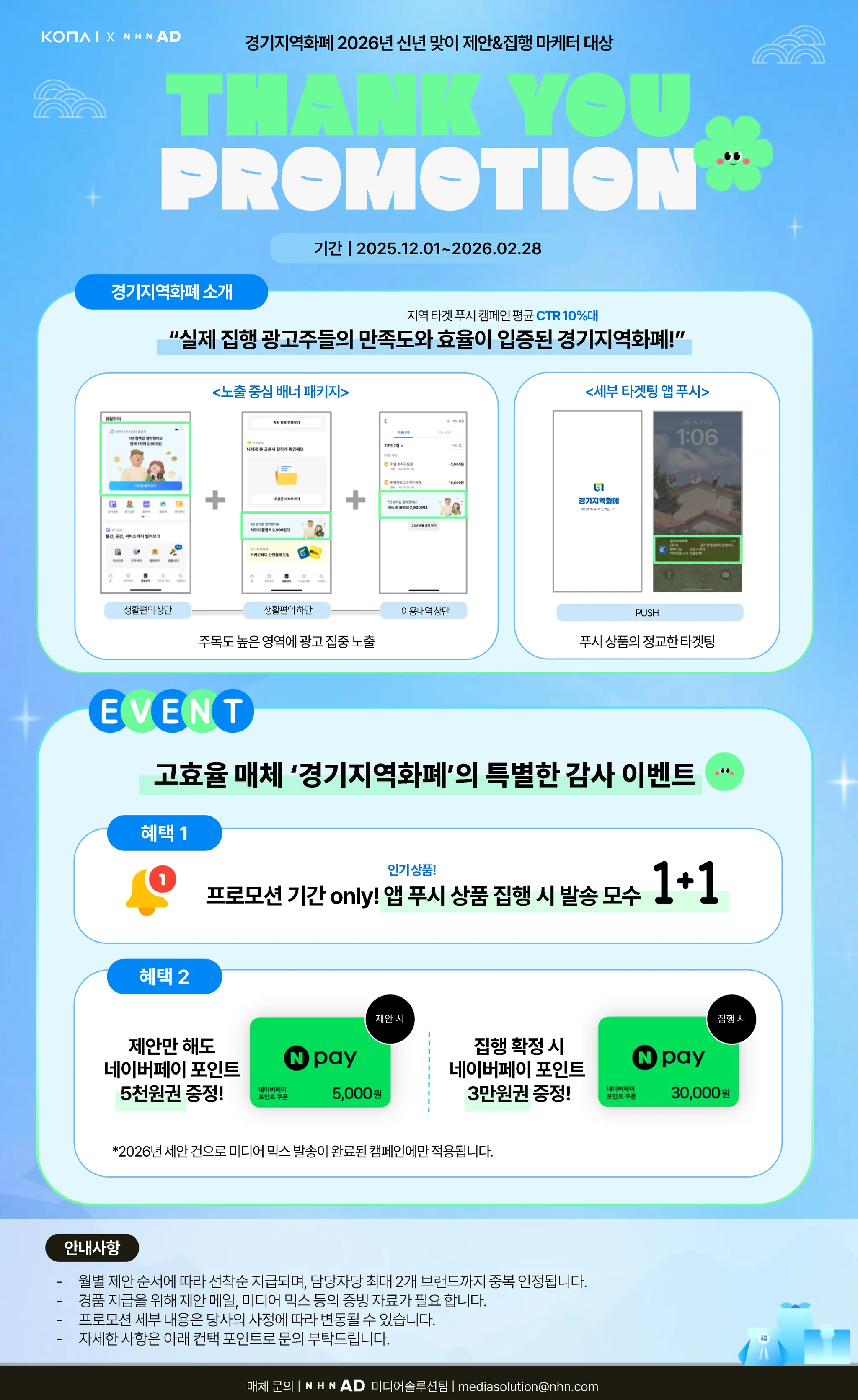 2) 제안건 네이버페이 5천원권 상품권 증정 / 집행 확정 시 네이버페이 3만원권 상품권 증정 (26년 제안건 기준)
